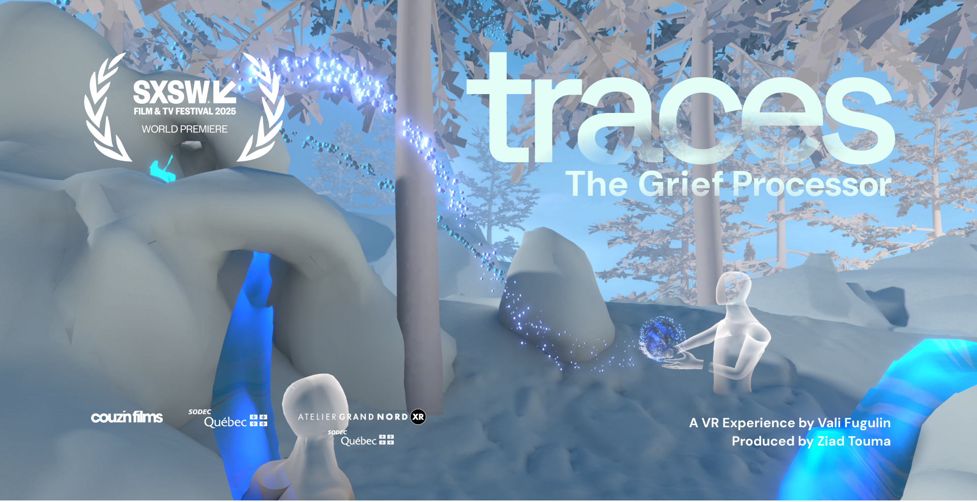 Traces est une expérience VR interactive et multiutilisateur qui permet d’explorer le deuil de manière ludique, poétique et émouvante.